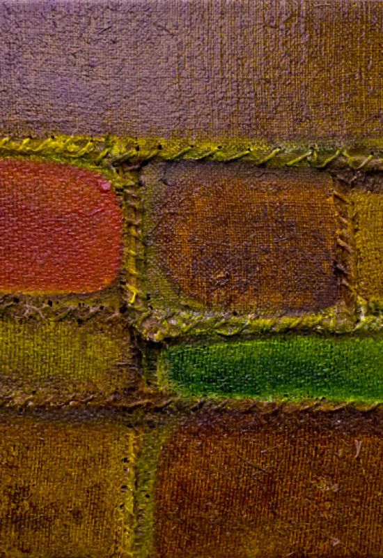 Die Vielschichtigkeit der globalen Welt tarnt sich auf rauer Jute oder Holz unter der glänzenden Schönheit der farbigen, bisweilen aber brüchigen Oberfläche ihrer Werke. Grobgeflickte Narbenwülste brechen sich Bahn, als wollten sie an Wunden erinnern.